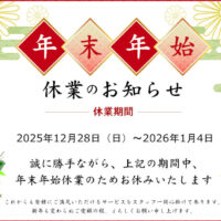 休業期間中に頂きましたお問い合わせやFAXへのご返答は、1月5日より順次ご連絡させていただきます。