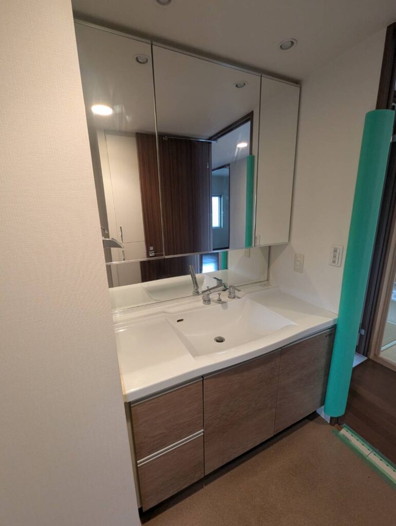 洗面台は少し幅を狭くして、横に収納を取り付けました!
